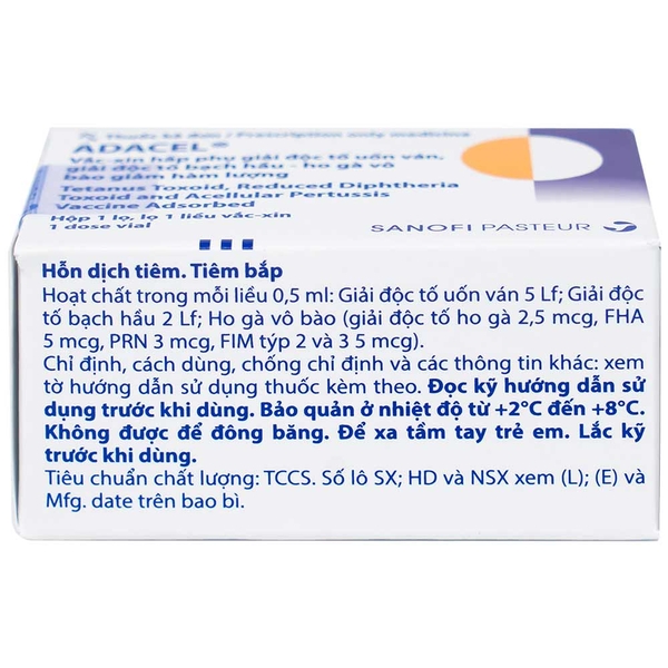 Vắc xin Adacel (Canada) là vắc xin phối hợp phòng 3 bệnh Bạch hầu - Uốn ván - Ho gà trong cùng 1 mũi tiêm được chỉ định tiêm cho trẻ từ 4 tuổi trở lên và người lớn đến 64 tuổi.