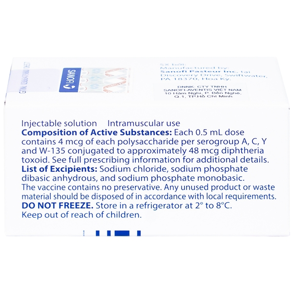 Vắc xin cộng hợp MENACTRA (Mỹ) được sản xuất theo công nghệ mới của hãng vắc xin uy tín hàng đầu thế giới Sanofi Pasteur (Pháp), có khả năng phòng ngừa bệnh các bệnh viêm màng não, nhiễm khuẩn huyết và viêm phổi do vi khuẩn não mô cầu tuýp A, C, Y, W-135 gây ra.