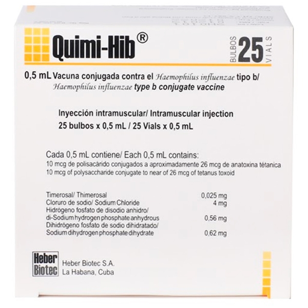 Vắc xin Quimi-Hib (Cuba) phòng ngừa bệnh viêm phổi, viêm màng não mủ... do vi khuẩn Hib.