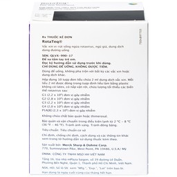 Vắc xin Rotateq (Mỹ) được chỉ định cho trẻ từ 6 tuần tuổi phòng viêm dạ dày - ruột và các bệnh do virus Rota thuộc tuýp huyết thanh G1, G2, G3, G4, G9 gây ra. Lịch trình uống vắc xin của trẻ phải kết thúc trước tuần thứ 32.