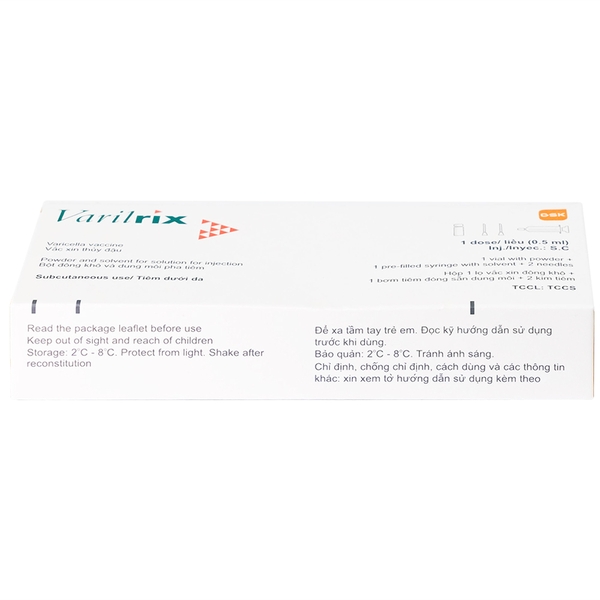 Vắc xin VARILRIX (Bỉ) là vắc xin sống giảm độc lực, được sử dụng để phòng ngừa bệnh thủy đậu cho người từ 9 tháng tuổi và những người lớn chưa có miễn dịch phòng bệnh.