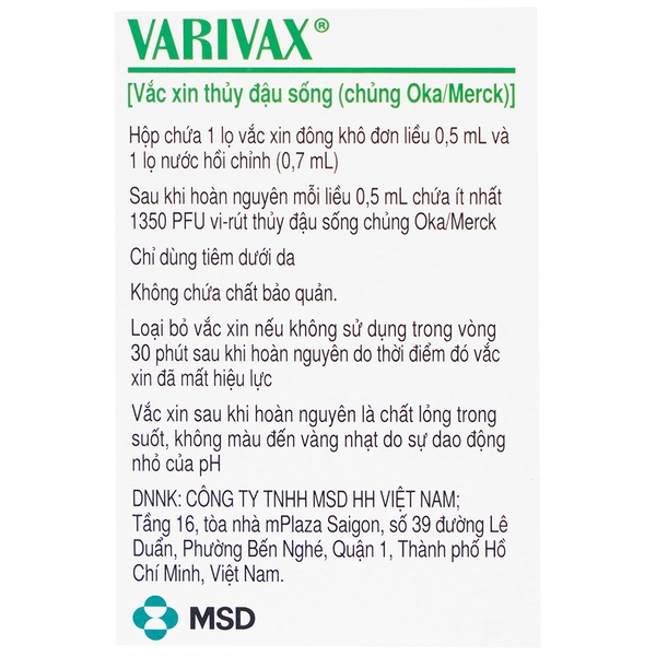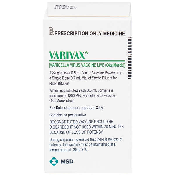 Vắc xin VARIVAX (Mỹ) là vắc xin sống, giảm độc lực, được sử dụng để phòng ngừa bệnh thủy đậu cho trẻ trên 12 tháng tuổi đến 12 tuổi chưa có miễn dịch phòng bệnh.